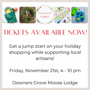 2025 Handmade Market presented by the Downers Grove Junior Woman’s Club. Our event will take place on Friday, November 21 from 4-10 pm at the Moose Lodge. Tickets can be purchased here: https://www.zeffy.com/en-US/ticketing/2025-dgjwc-handmade-market