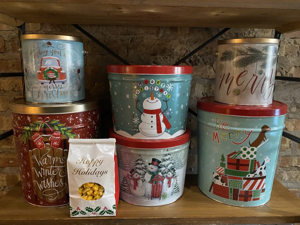 Holiday Tins available in 1 gallon, 2 gallon, and 3.5 gallons. Limited quantities! Our 1 gallons are $31.99, 2 gallon $49.99, 3.5 gallon $64.99. All tins are refillable for a discounted price! Holiday bags are $6.50 each!